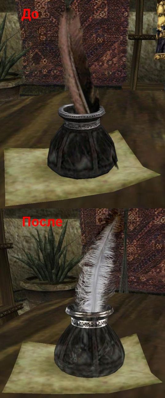 Этот мод является переработанной частью плага Misc Items Replacer от Qarl и включает в себя улучшенные модели и текстуры чернильницы, пера и деревянного ведра.