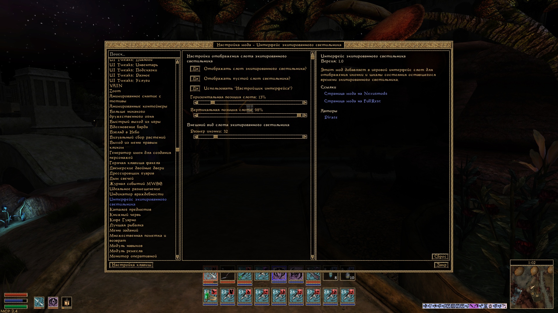 Этот мод добавляет в игровой интерфейс слот для отображения иконки и шкалы состояния оставшегося времени экипированного светильника.