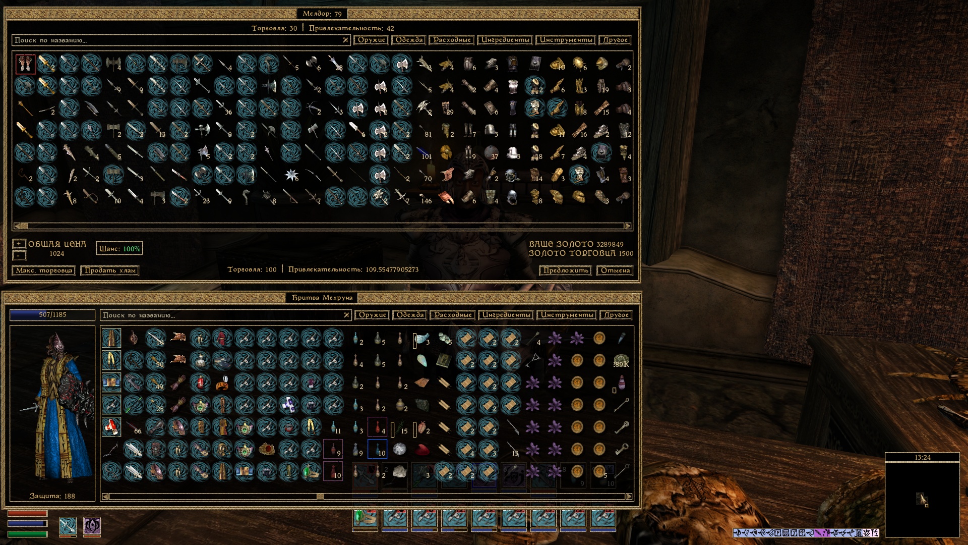 — Кнопка «Продать хлам»: автоматически выбирает для продажи все предметы, помеченные ранее как хлам.
