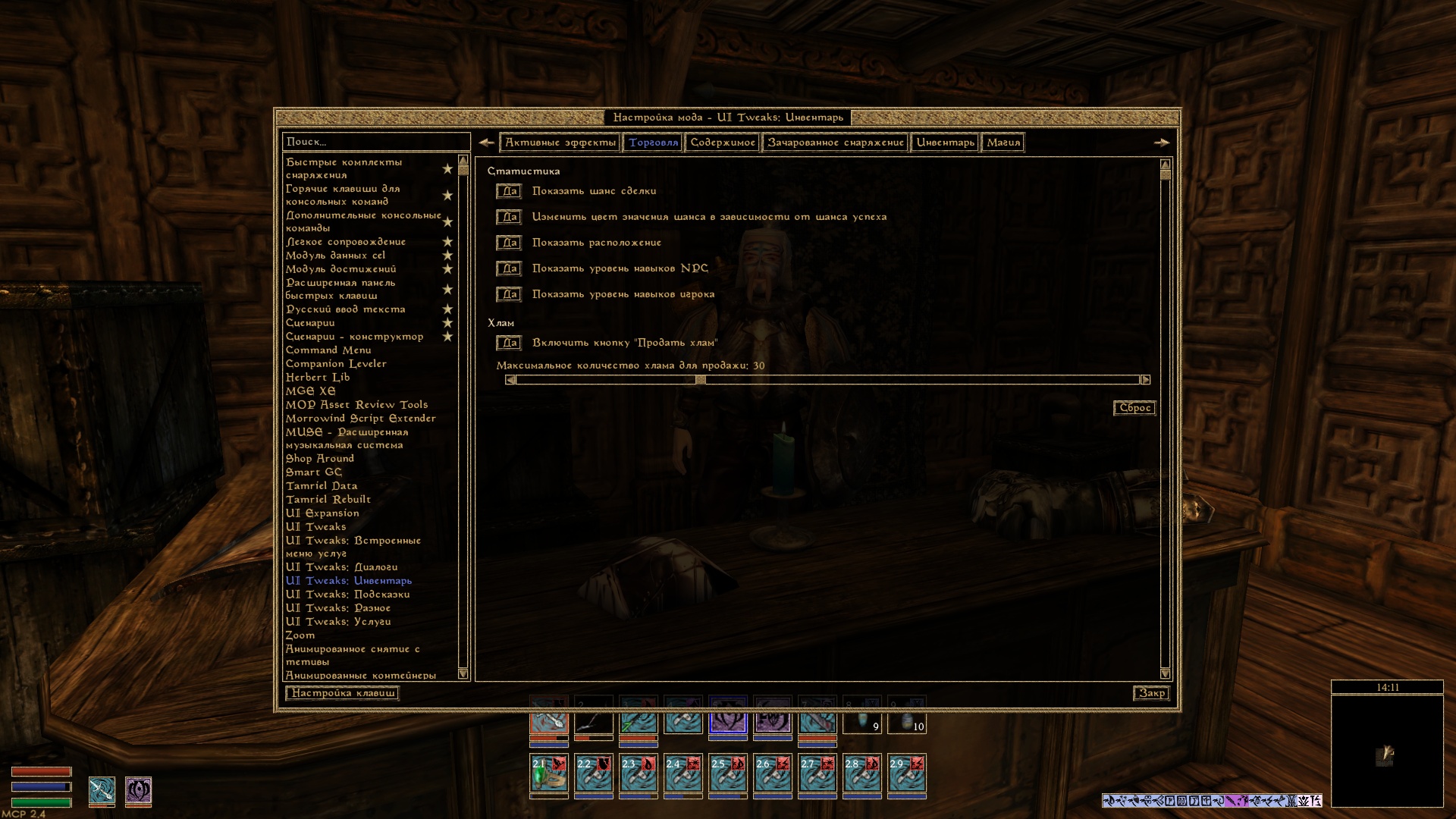 — Отображение в окне торговли информации о навыках торговца и игрока.