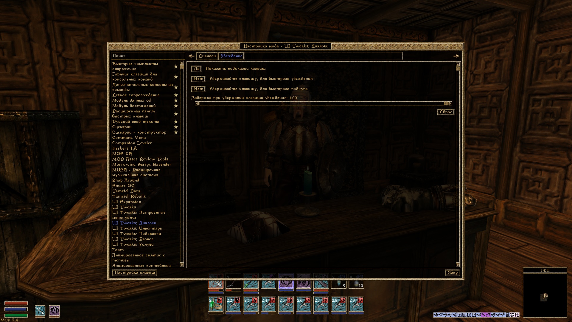 — Удерживание клавиш для быстрого убеждения и подкупа.