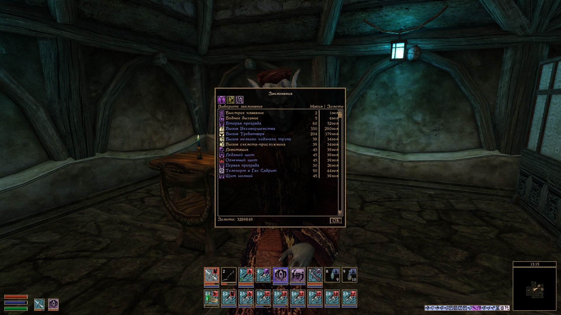 Меню зачарования