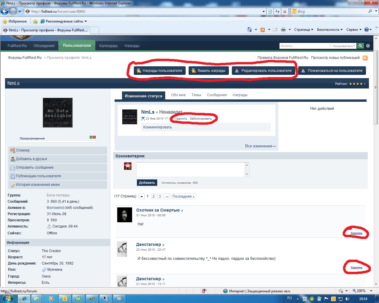Lord Alex Опубликовано 3 августа, 2010 Жалоба Поделиться Опубликовано 3 августа, 2010 Ну так текущий скин для версии движка 3.0. Нужно обновить скин:Ну и славненько, сегодня поставлю Как бы то ни было, кнопка "Лишить награды" висит во всех скинах. ВОобще то это специально сделано, потому что поидее можно каждому пользователю дать возможность выдвать и отнимать медали. Кое что поменял проверьте не пропала ли она.Смотрю реакции народа на всякие дополнительные кнопки - 1 кнопка уже трагедия века)) Я чувствую пол форума бы себя убила обстену увидя сколько всяких кнопочек и рюшечек у админской учетки))) Ссылка на комментарий Поделиться на другие сайты Поделиться