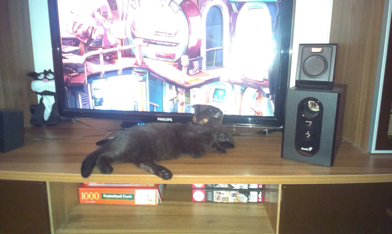 Вот такого вислоухого шотландца взяли к себе в семью. Такого активного котяры я ни разу еще не видел :)