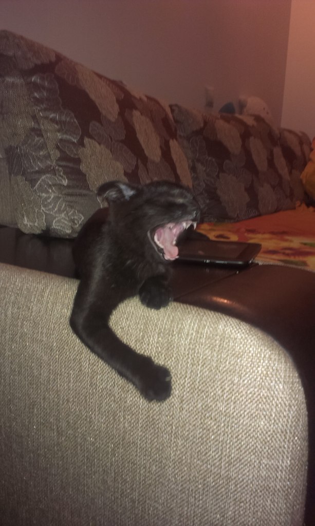 Думали будет очень бояться переезда - метро, электричка. Так вот в метро он немного мяучил (похоже из-за голода), в электричке вобще заснул. Своим дружелюбием просто душит :) Если у него есть силы, то он лезет тереться мордами или хотя бы просто валяться рядом (ну как рядом, где-нибудь на лице у хозяина - самое то, других мест нет). В нем есть крайне полезная функция - будильник, но вот с настройкой ее я не разобрался. Так что всю неделю вот поспать нормально еще не удалось. Выспится, прийдет в 4-5 утра и начинает тереться, лапами мять лицо и мурлычить. Причем мурлыканье наверное даже соседи слышат.