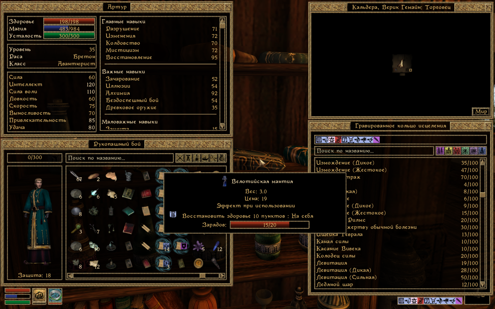 mylordandru Опубликовано 21 октября, 2018 Жалоба Поделиться Опубликовано 21 октября, 2018 Я не очень понимаю, в чем смысл это исправлять. Ведь главное - второе число в "Х/Х". Ошибка - это если в предмете зарядов "0/0". А "61/150" - ну и что? Купишь амулет - заряд восстановится до 150. Ты не прав, но спорить не буду. Мое дело - найти. Будете исправлять или нет - не моя забота. Левитирующий кристалл возле Тераны в ее покоях (Тель Бранора): Ссылка на комментарий Поделиться на другие сайты Поделиться