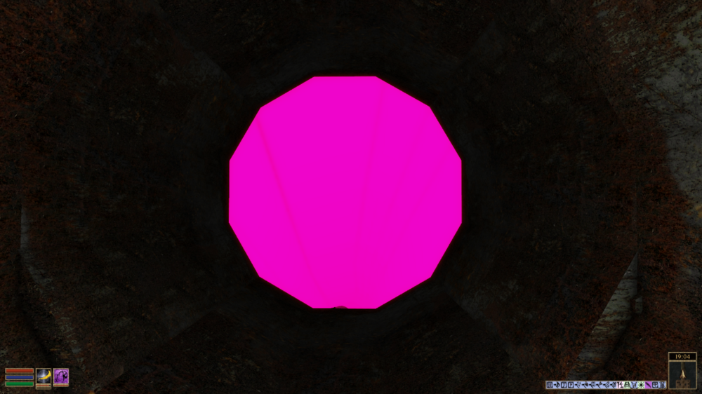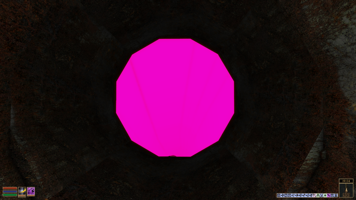 Похоже на пропавшую текстуру пещеры. В новом двемерском комплексе на красной горе. Локация "Проход потерянного света". (M[FR] 4.0.93, чистый, без стронних плагинов).