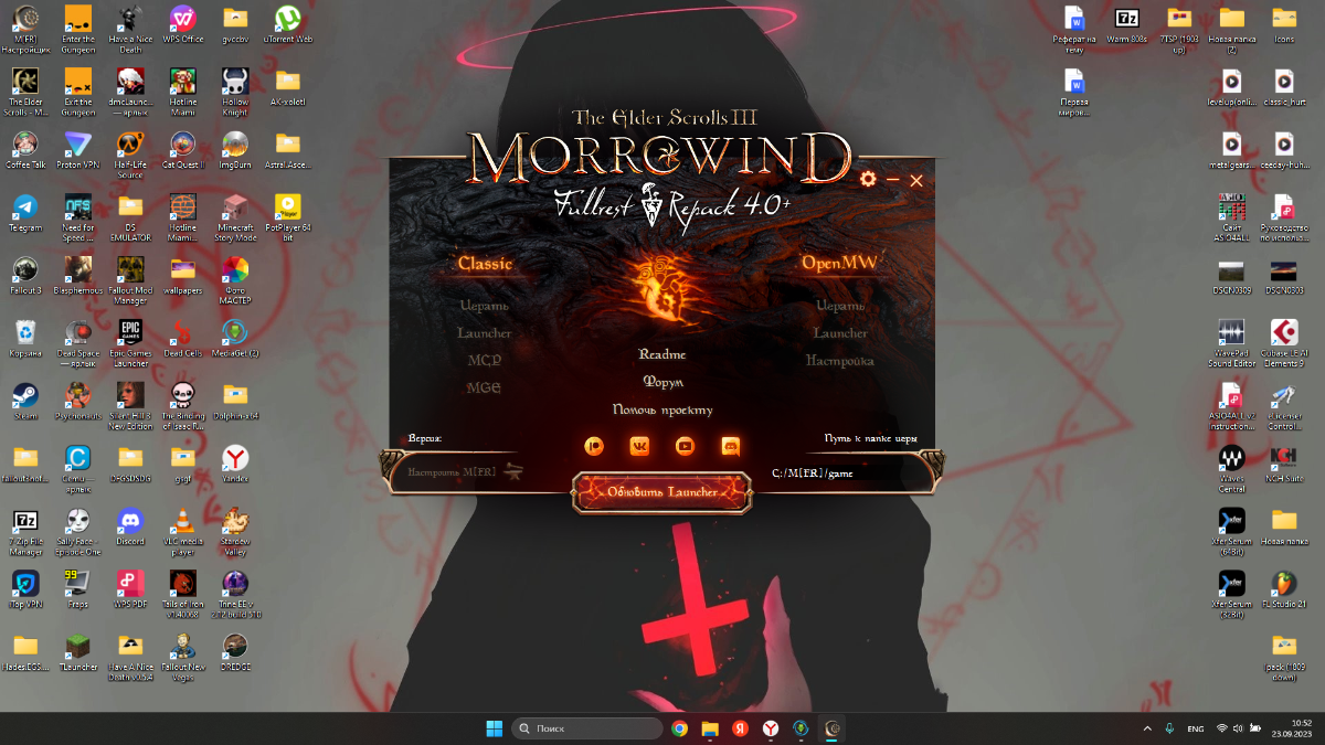 Проблема в лаунчере, поэтому еще одним решением проблемы является поиск и установка автномной версии MFR, то есть архива с уже загруженной средствами лаунчера сборки. Тогда ее можно будет запустить непосредственно через Morrowind.exe или OpenMW.exe
