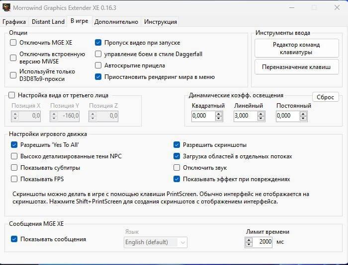О.: Запустить MGEXEgui из папки игры (\Morrowind\game), настроить и не запускать его в лаунчере. Настройки сохранятся и не будут сбрасываться.