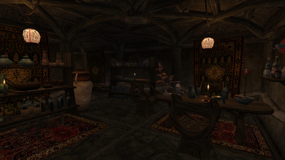 - Бедные данмерские лачуги с плоским полом — так же, как и бедная данмерская мебель, интерьеры этих лачуг в ванильной игре имели неровные полы, что доставляло нашим разработчикам интерьеров бесконечное горе во время расстановки предметов (FloorBelow).